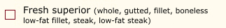 Fresh superior salmon (whole, gutted, fillet, boneless fillet, boneless low-fat fillet, steak, low-fat steak)