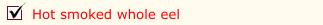 Hot smoked whole eel